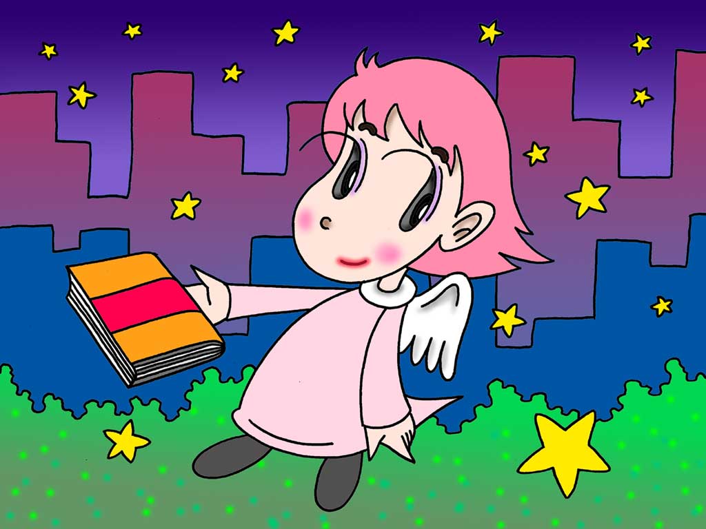 「オリジナル・天使キャラクター」第3弾 <本を片手に微笑む天使。読書週間に使えるかも>