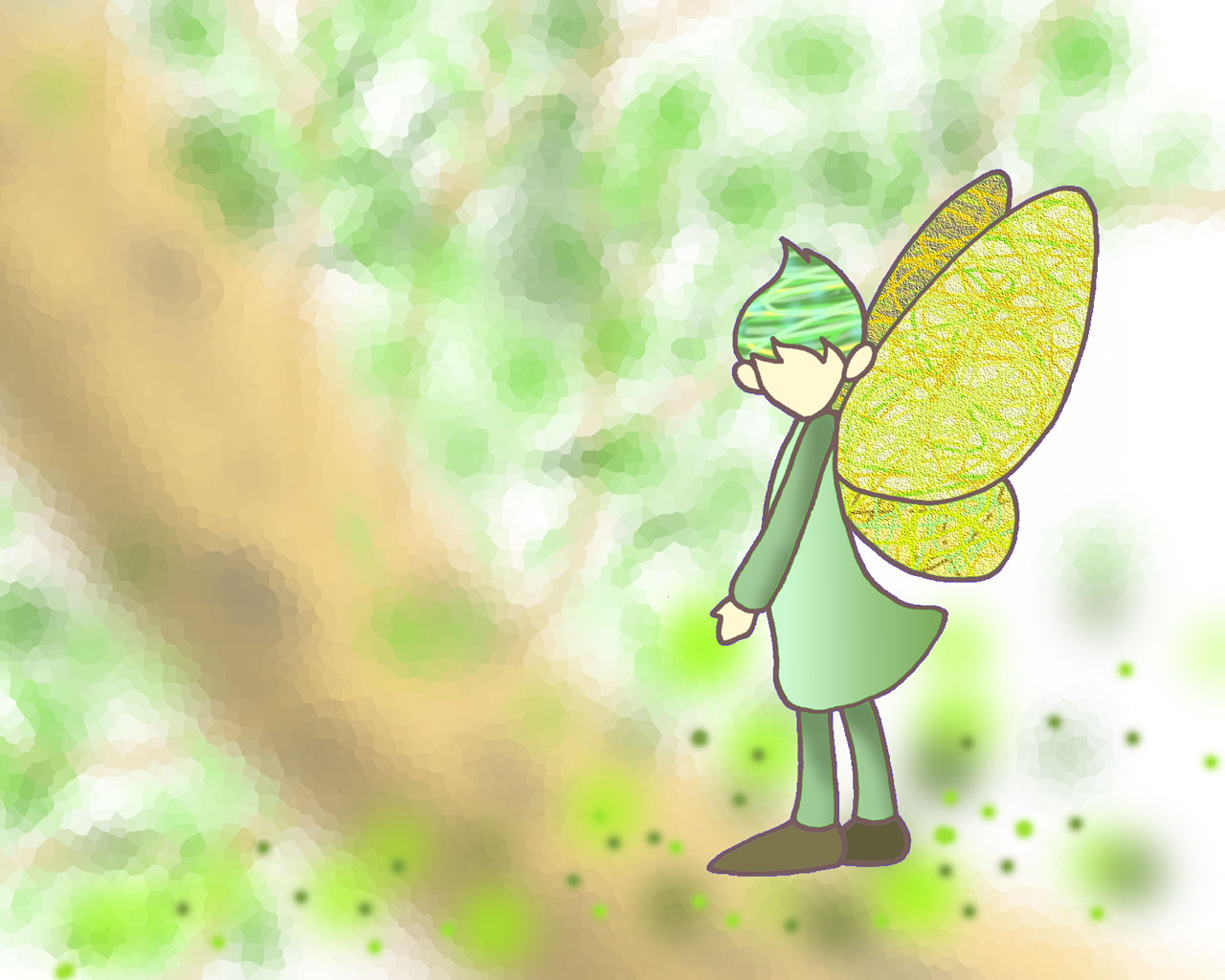自然の中の妖精・シリーズ.6「陽だまりの妖精」<暖かい陽だまりの中で遊ぶ妖精>