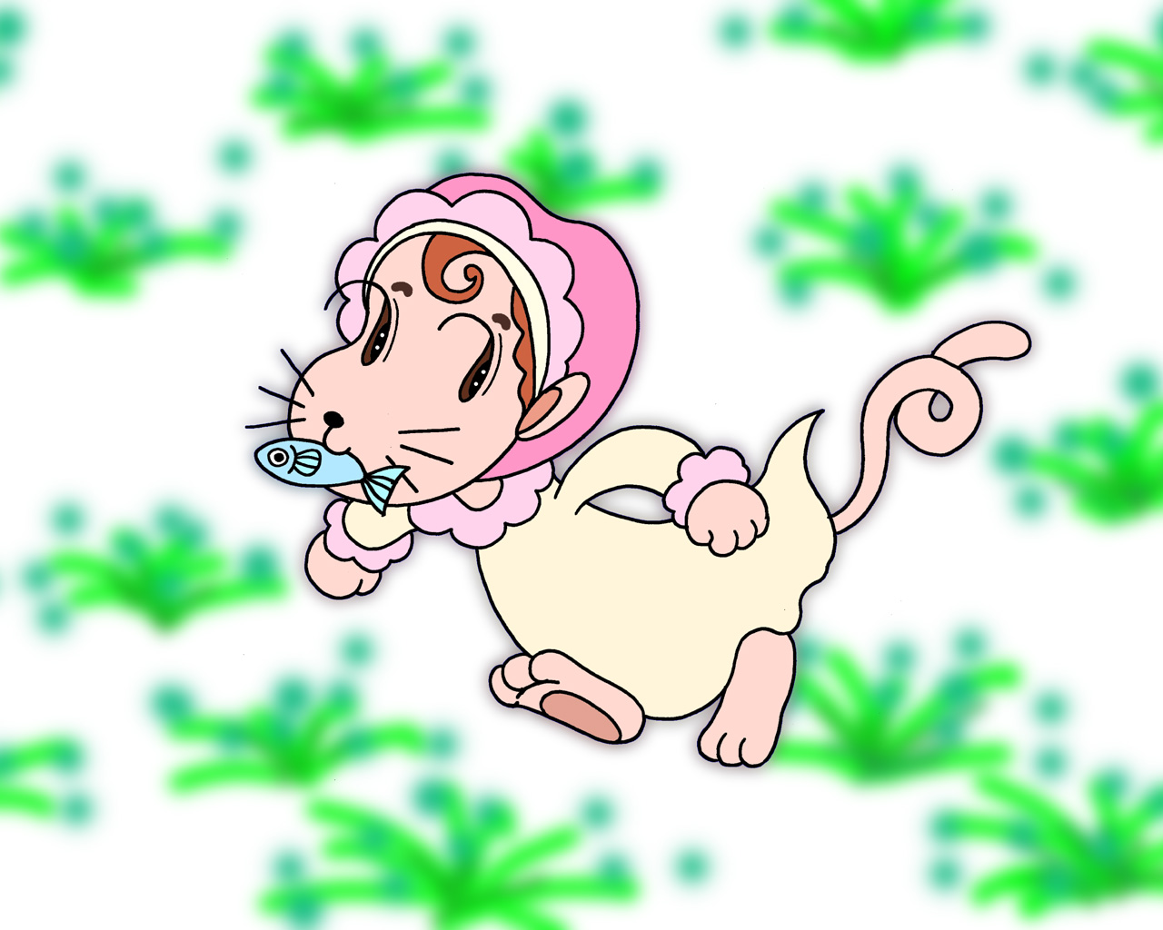 赤ちゃん(猫?)キャラクター・イラスト壁紙 「ニャンビー」.3「猫のような赤ちゃんのキャラクター」第3弾 <お魚くわえたニャンビー~♪でした>